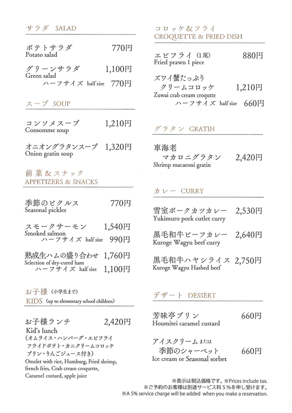 ※ご予約のお客様は別途サービス料5%を申し受けます。